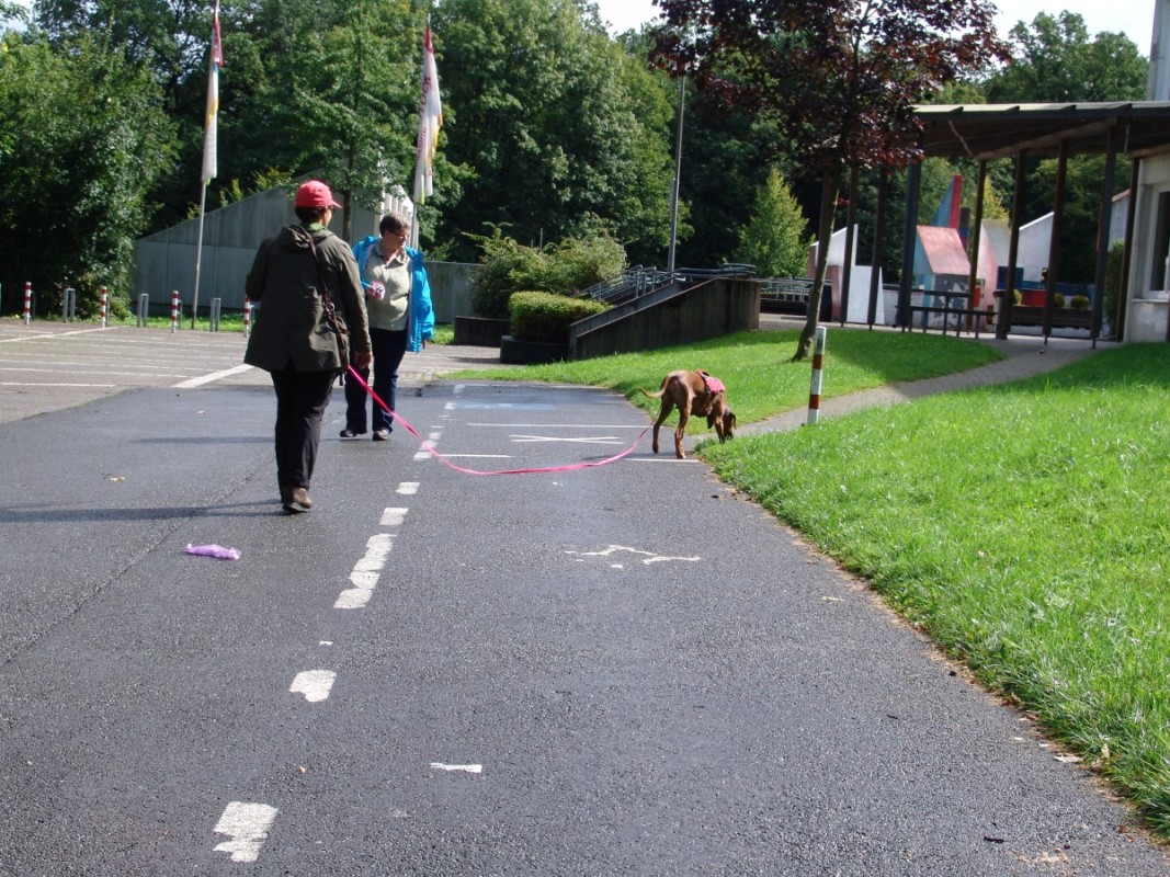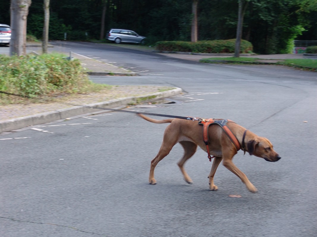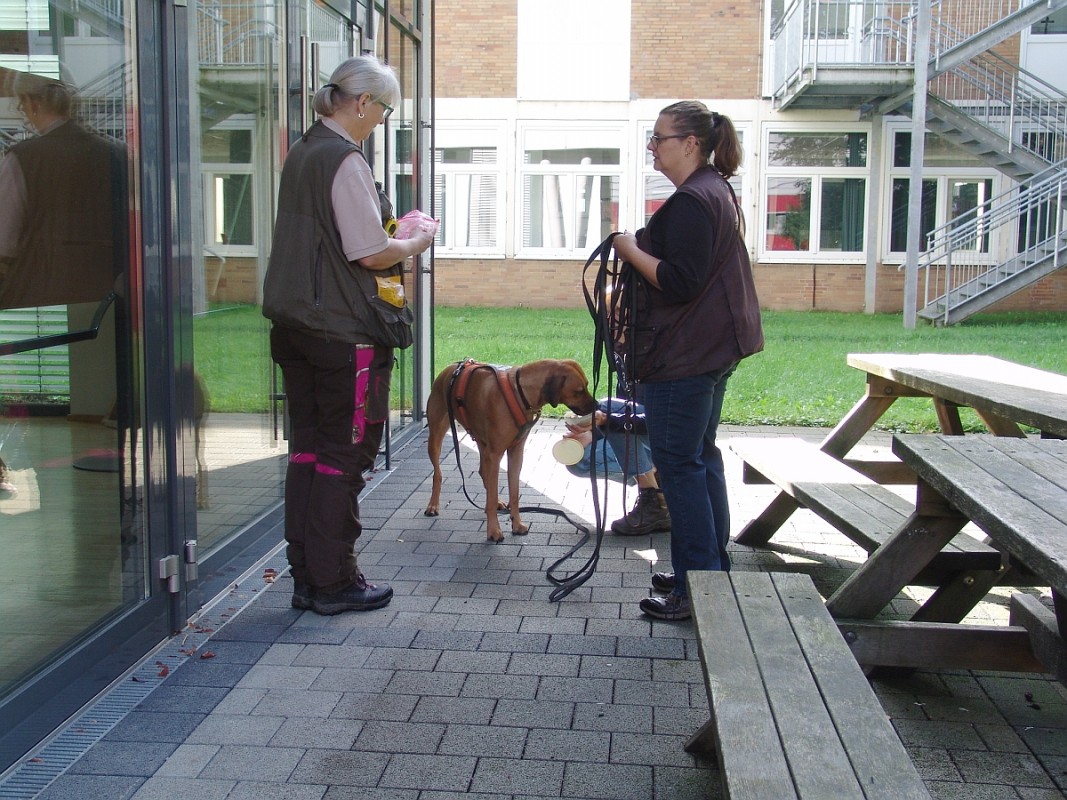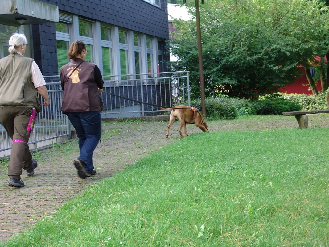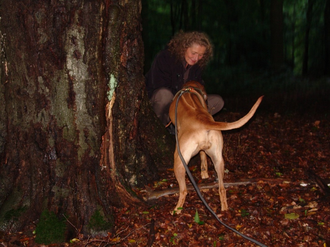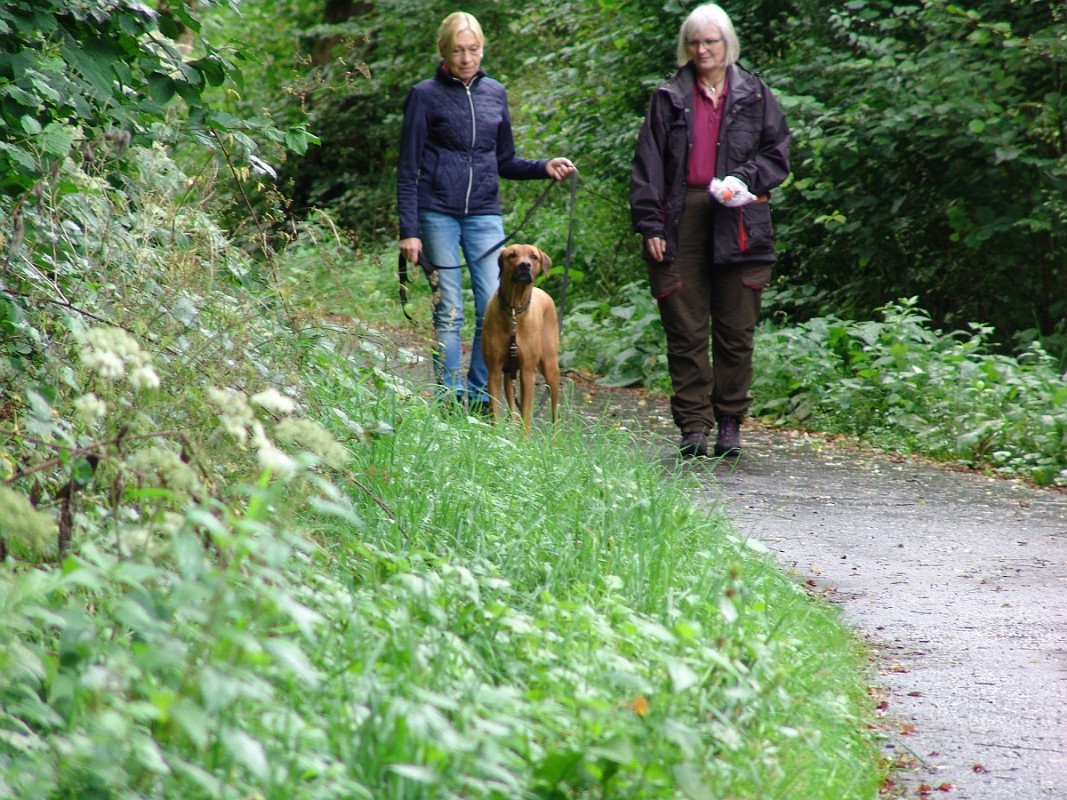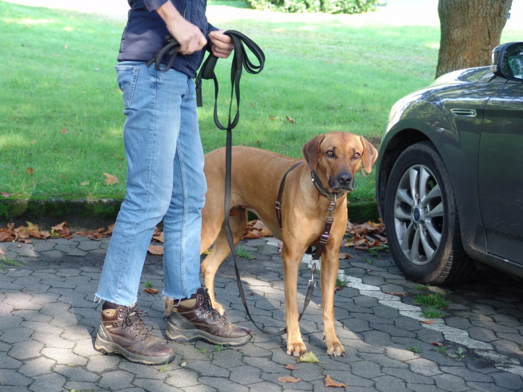 Nach der Mittagspause wurden die ersten Trails durchgeführt. Da leider so wenige Teams dem Aufruf der Landesgruppe gefolgt waren entstanden kaum Wartezeiten für die Teilnehmer und hier zeigte sich wieder, dass unsere Ridgis schnell verstehen worum es geht. Alle Teams waren mit Eifer und Konzentration bei der Sache und der versteckte Mensch wurde von allen ohne Probleme gefunden, und der Spaß, den die Hunde an diesem selbstständigen Arbeiten hatten, konnte man deutlich sehen. Zum Abschluss des ersten Tages konnten wir Susanne und Vasco begleiten, um ein erfahreneres Team bei der Arbeit live zu sehen.