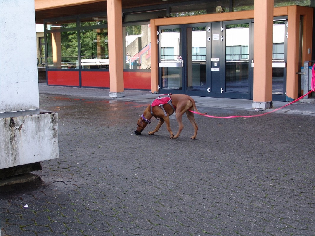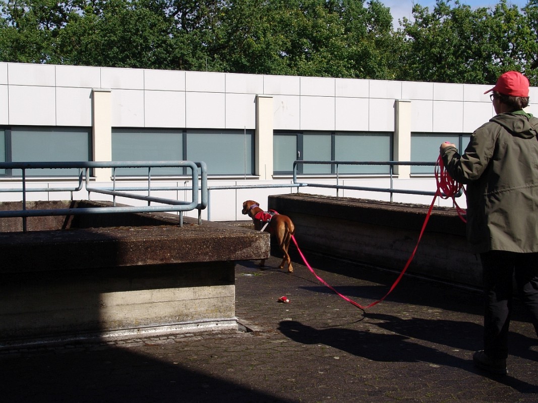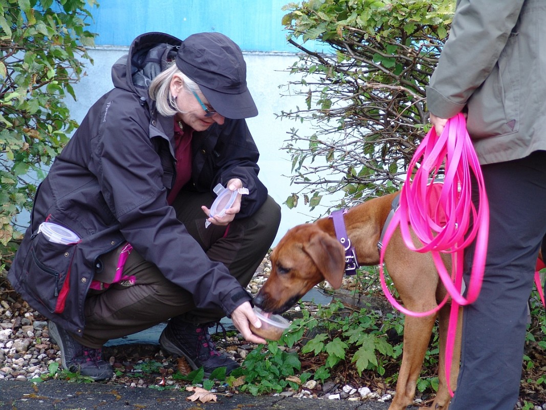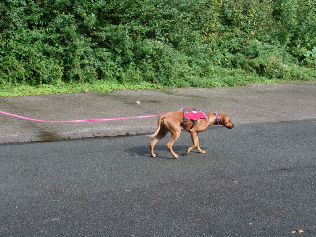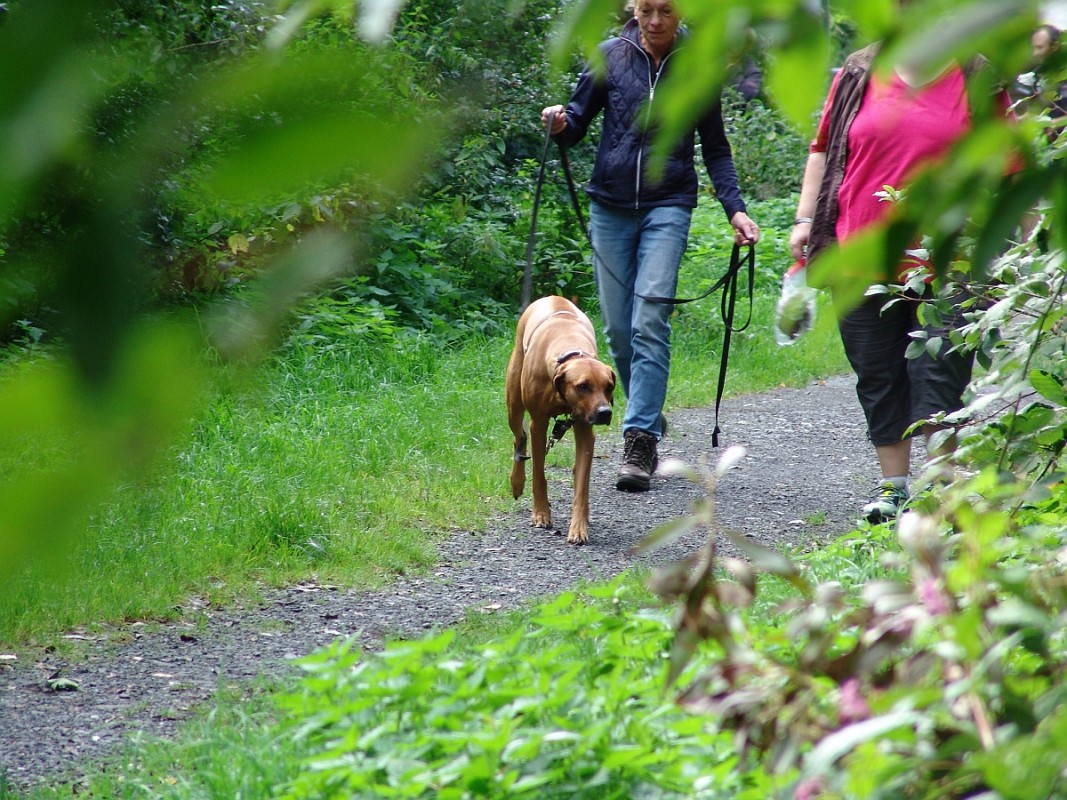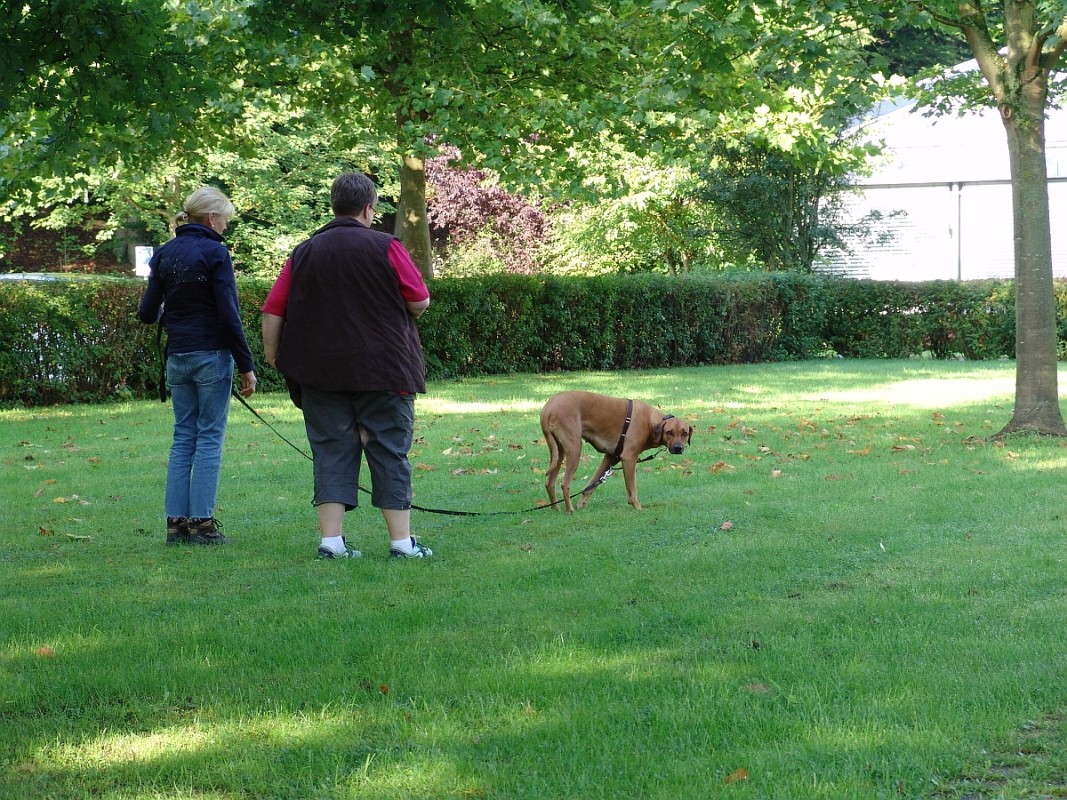 Nach der Mittagspause wurden die ersten Trails durchgeführt. Da leider so wenige Teams dem Aufruf der Landesgruppe gefolgt waren entstanden kaum Wartezeiten für die Teilnehmer und hier zeigte sich wieder, dass unsere Ridgis schnell verstehen worum es geht. Alle Teams waren mit Eifer und Konzentration bei der Sache und der versteckte Mensch wurde von allen ohne Probleme gefunden, und der Spaß, den die Hunde an diesem selbstständigen Arbeiten hatten, konnte man deutlich sehen. Zum Abschluss des ersten Tages konnten wir Susanne und Vasco begleiten, um ein erfahreneres Team bei der Arbeit live zu sehen.