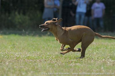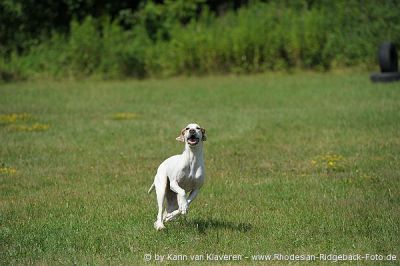 Die Teilnehmer jedenfalls hatten eine Menge Spaß. Es wurde viel gelacht, angefeuert und es war einfach toll anzusehen wie elegant die Ridgebacks über den Parcours fegten. In der Pause kamen dann die „Nichtridgebacks“ auf ihre Kosten und liefen was das Zeug hielt. Unter ihnen gab es auch den einen oder anderen Coursingmeister.