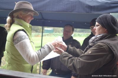 Gaby Lenkewitz mit Red Wheaten Asab und Red Wheaten Baqui-Sangoma (Nacheinanderhandling :-) Bettina Schönenberger mit Von Müllers Wonda Tanisha