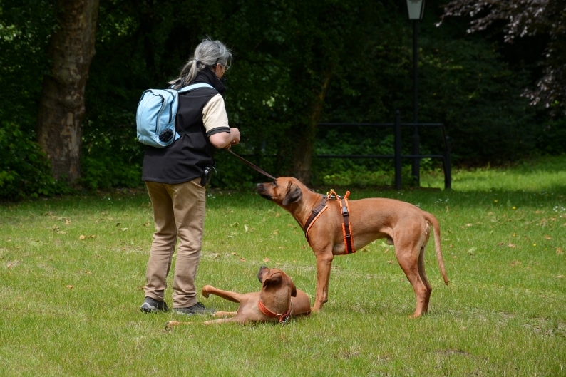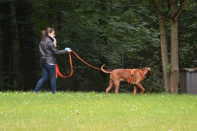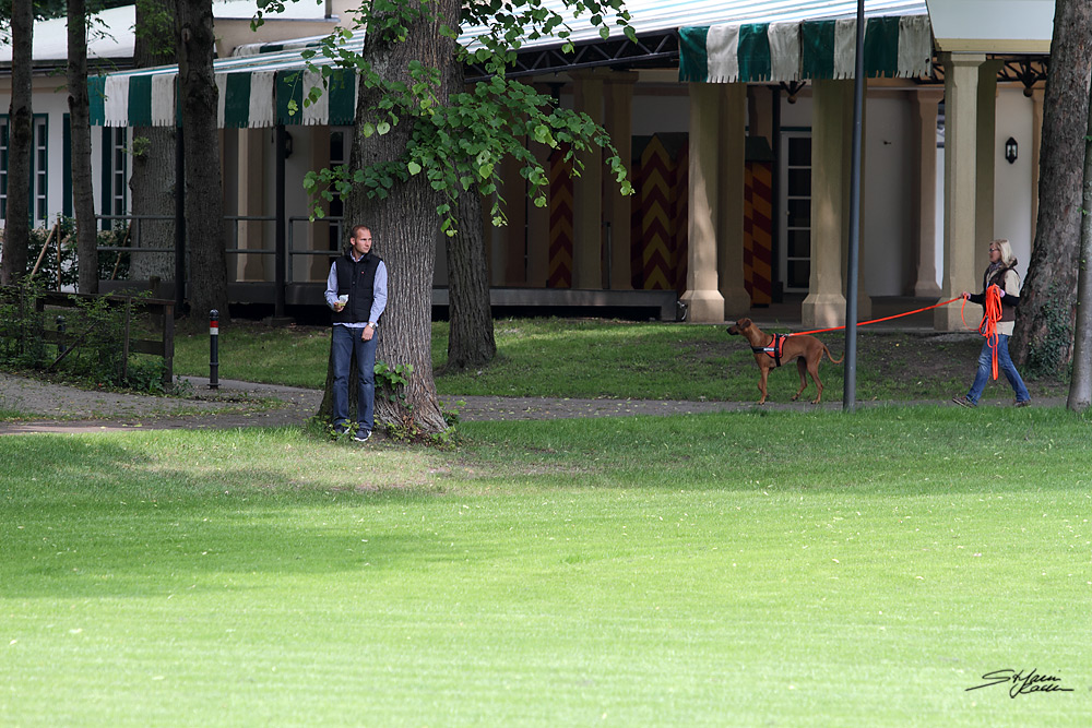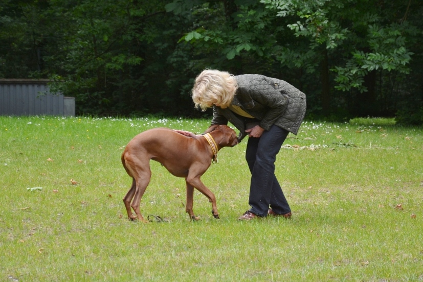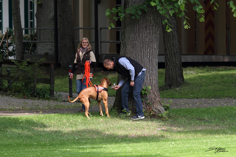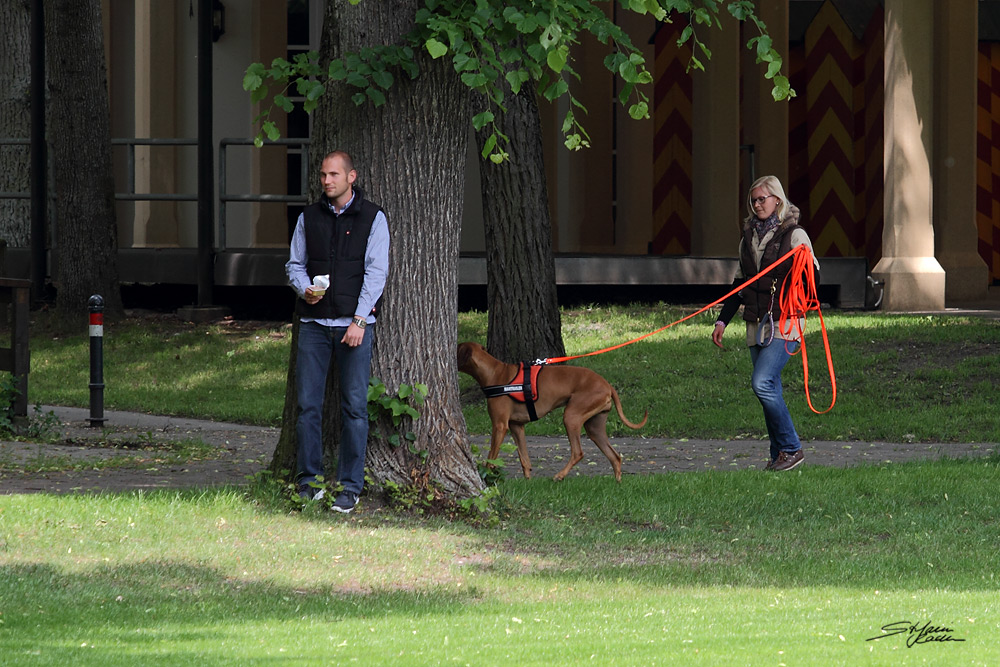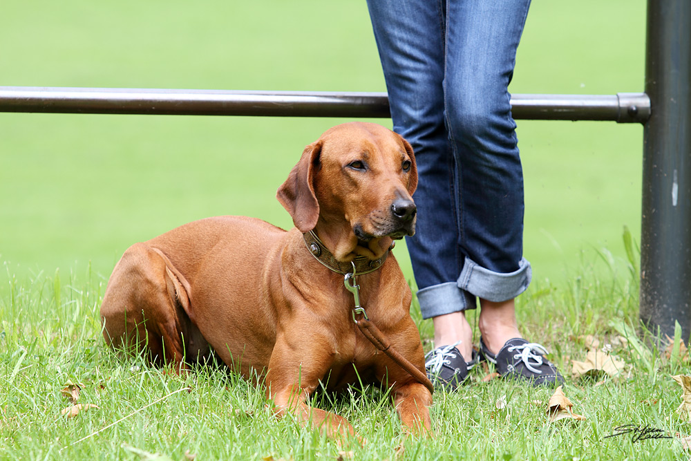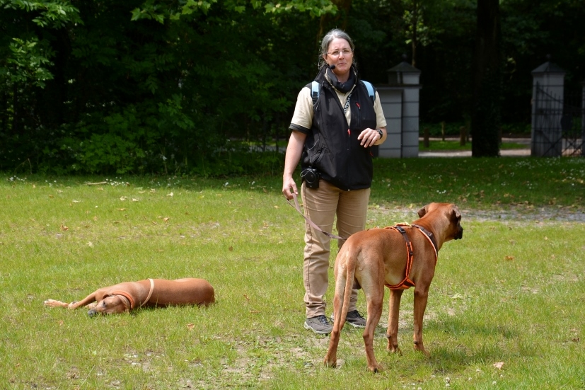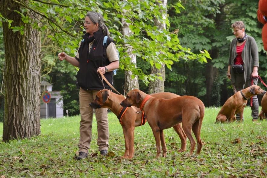 Anschließend sahen die zahlreichen Besucher auf dem angrenzenden Rasenplatz verschiedenen Ridgebacks bei der Nasenarbeit zu. Dabei kommentierte Birgit die vorgestellten Beschäftigungsmöglichkeiten wie Fährte, Mantrailing und die Suche nach 'verlorenen' Gegenständen und das anschließende Apportieren. Wir hoffen, dass diese praktischen Darbietungen der sinnvollen Teamarbeit viele Ridgebackbesitzer motivieren wird zusammen noch mehr Spaß zu haben.