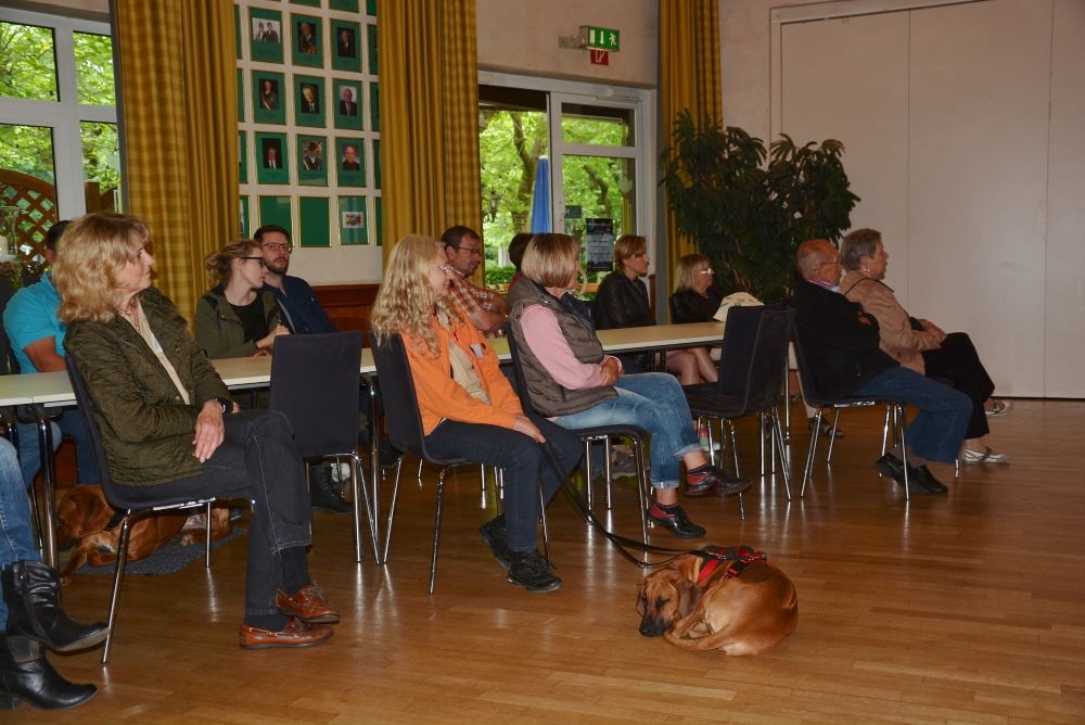 Bei bestem Ridgebackwetter -trocken und sonnig- startete unsere Informationsveranstaltung im stilvollen Fahnensaal mit der Begrüßung aller Gäste durch die 1. Vorsitzende Frau Veronika Penke, durch das vielfältige Tagesprogramm führte Frau Birgit Kappler-Reinhold, Obfrau für das Leistungswesen und geprüfte Hundetrainerin.