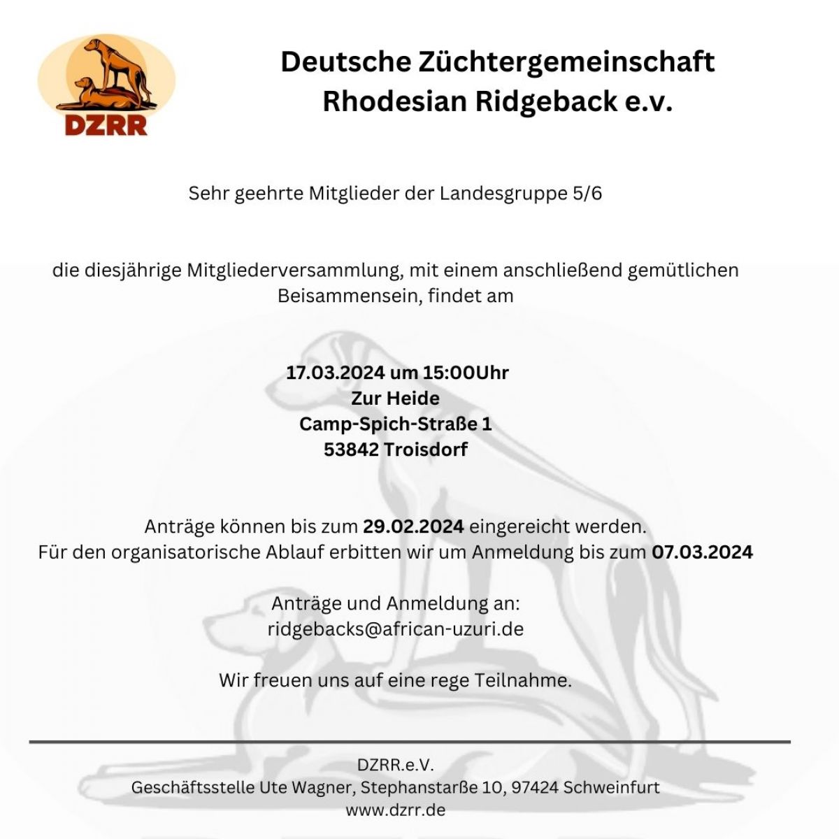 zur Übersicht Rhodesian Ridgeback Termine